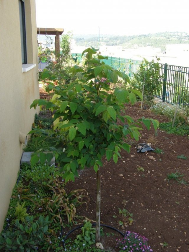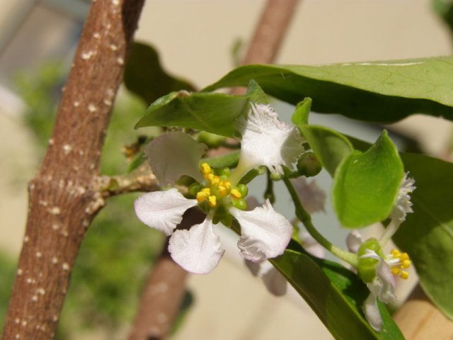 היא כמעט ולא גדלה מאז שנשתלה, אבל הופיעו פרחים ראשונים. עץ מוזר 🙂