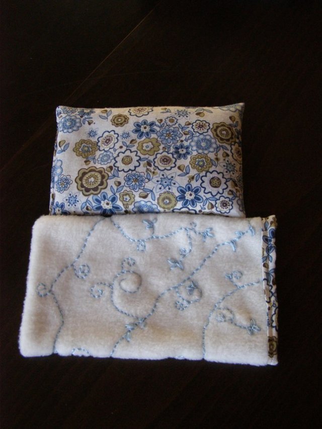 כרית חימום עם פשתן ולוונדר (בתקווה שהחורף יגיע יום אחד) ונרתיק רקום מפליז לכרית החימום.