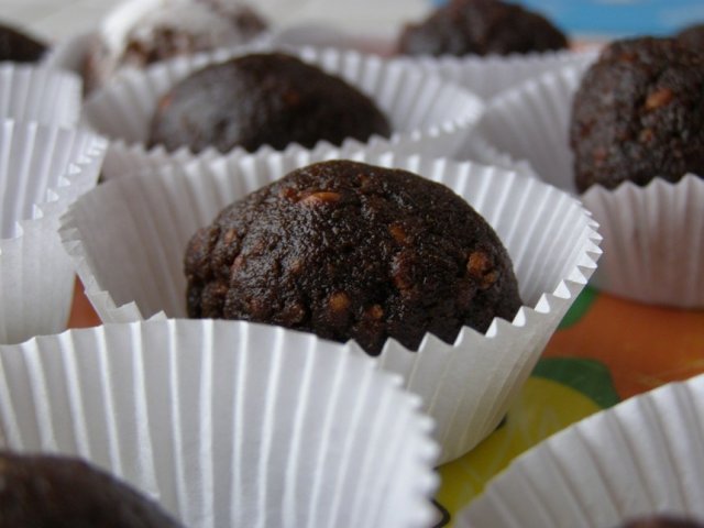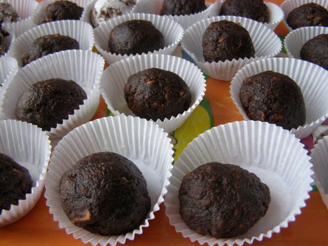 עושים כדורים קטנים, כדאי בידיים רטובות (או שאפשר להכין גם נקניק שוקולד)