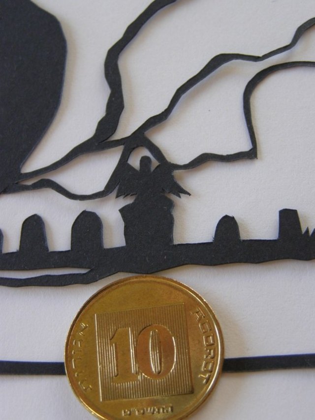 נייר: בריסטול כחול מאוד מאוד כהה. יראה כשחור על רקע בהיר או ככחול כהה על רקע כחלכל.