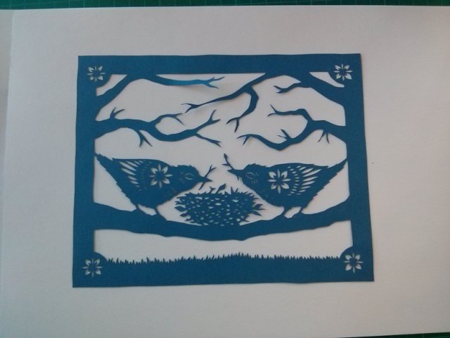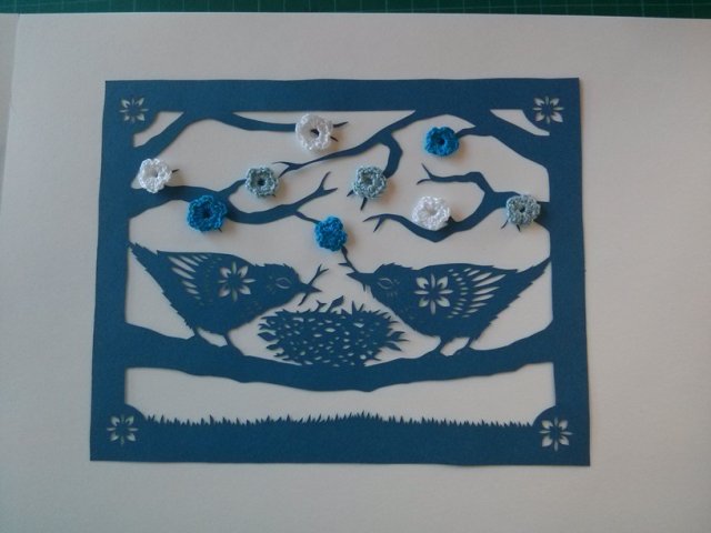 אחרי שחתכתי, זה הרגיש לי מעט חשוף וקר מדי , בתמונה המקורית היו שכבות של נייר צבעוני לעלים אבל החלטתי לנסות כאן משהו אחר: