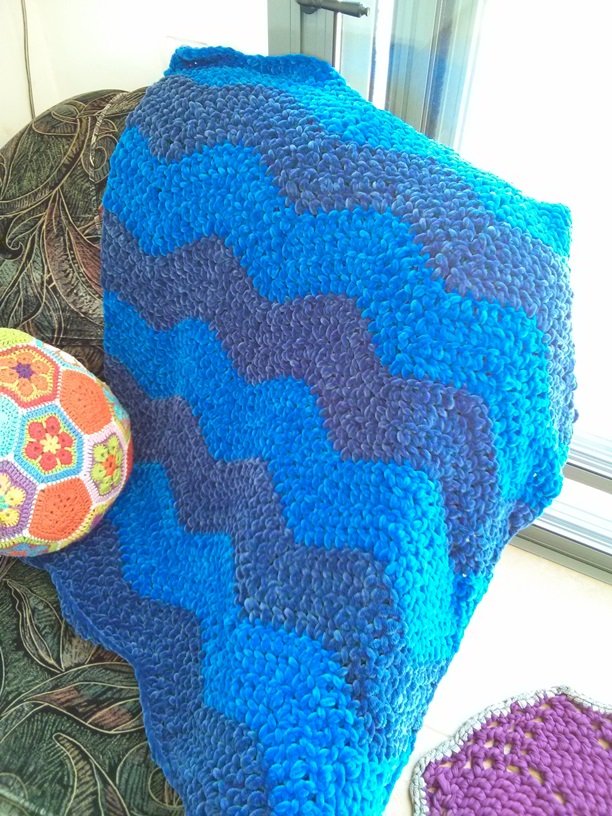 השמיכה היא שמיכת גלים קלאסית, עם צמר עבה ופרוותי במיוחד.