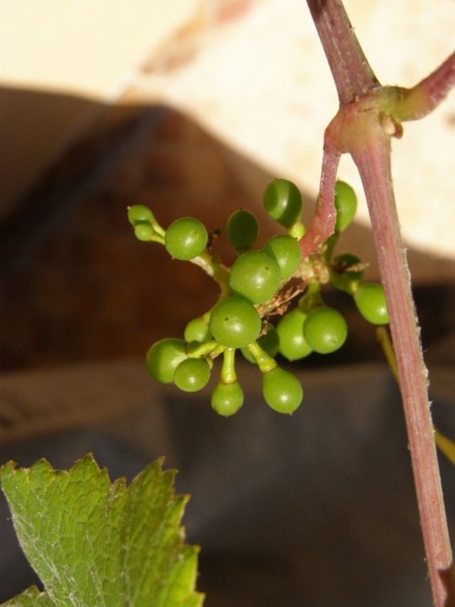 הגפן שתולה פחות מחודש אבל כבר מכוסה בפרי.