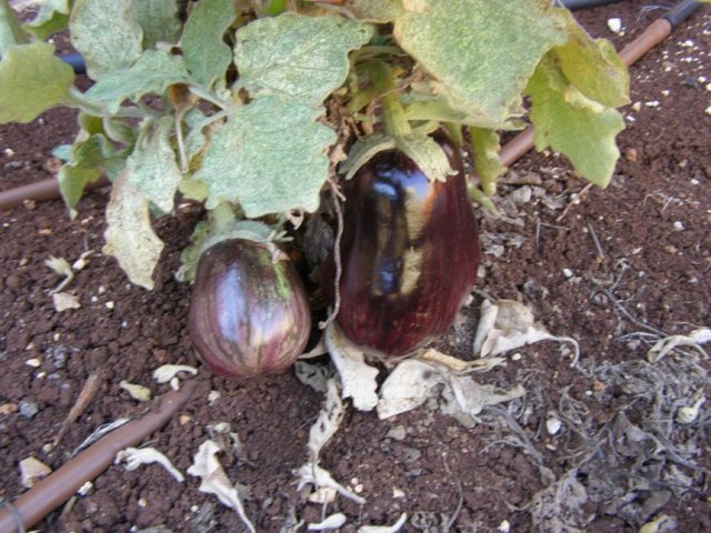 שתיל יחד. נשתל בקיץ שעבר ולא הניב. שרד את החורף, גדל יפה ועכשיו מכוסה הפרחים ונושא שני חצילים מכובדים 🙂