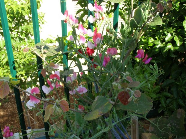 בסדר, אני אנסח את זה מחדש. אפונה ריחנית פורחת ומתחתיה הפלסה, שגם מנסה לפרוח 🙂