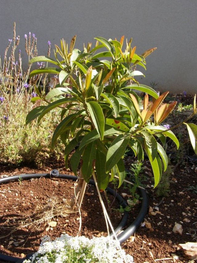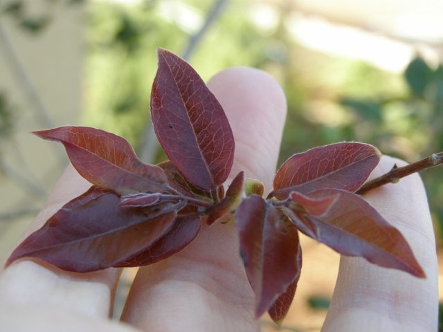 עבר חורף קשה ועיבד את כל העלים שלו וחלק ניכר מהענפים. סבל מכוויות קור שהשחירו כמעט את כל הענפים הדקים שלו. גזמנו אותו כמעט לחלוטין וכבר חשבנו שאולי הגיע הזמן להיפרד ממנו. טעינו בעץ. מלבלב כמו מטורף. מוסיף כמה ס"מ בין הבוקר לערב.