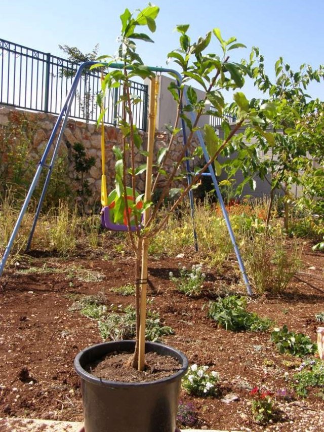 עץ ששתול שנה באדמה. כרגע, בגובה ברך. פרי נהדר, אם אי פעם העץ יגיע לגודל שהוא נותן כזה 🙂