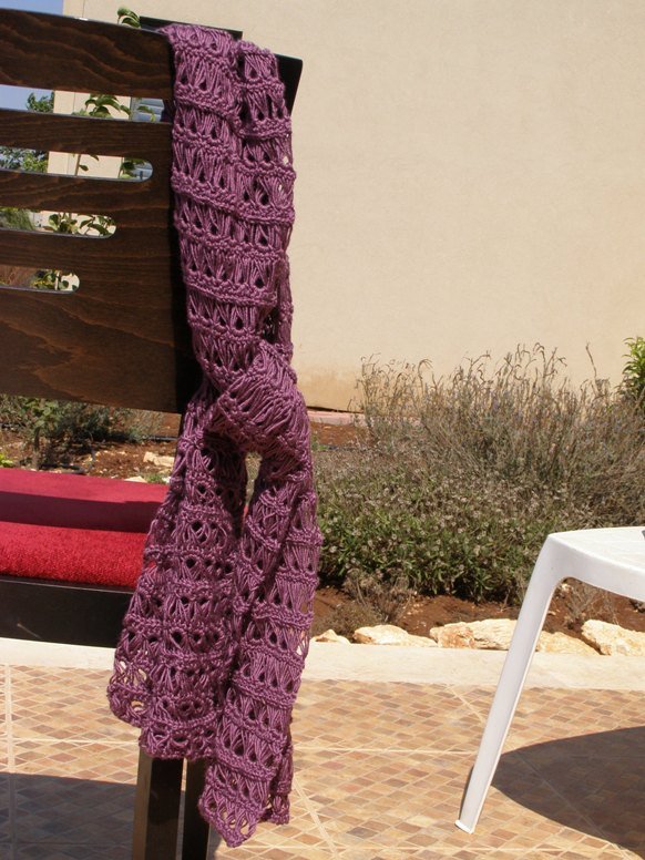 תובנות (סוביקטיביות) – אני מעדיפה לסרוג על "מטאטא" עגול. את הצעיף סרגתי על כף עץ עבה לסלט (החוט מאוד עדין אז חיפשתי עץ יותר מלוטש מהמטאטא הרגיל שלי). כלומר, "מטאטא" מלבני וצר, כלומר צריך לעלות עיניים בזווית מסוימת ולפי דעתי זה הוסיף לסרבול של הסריגה.