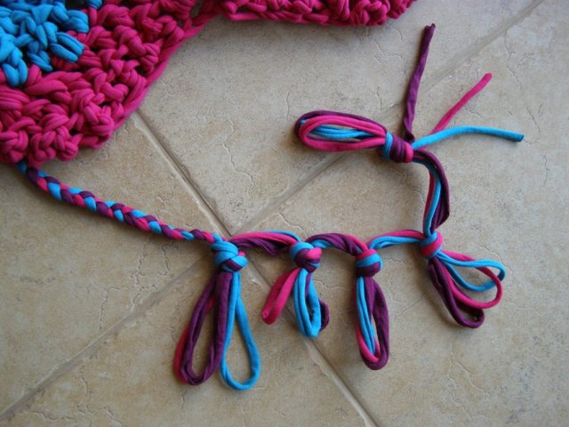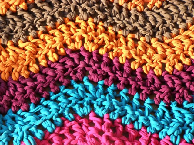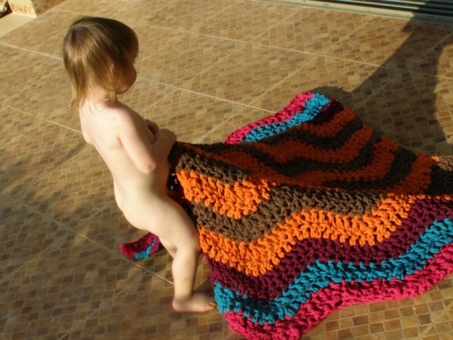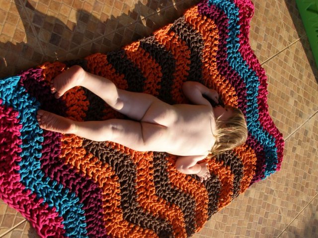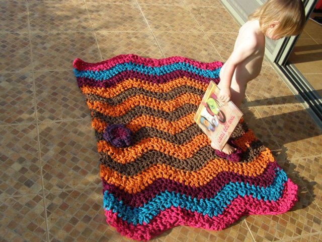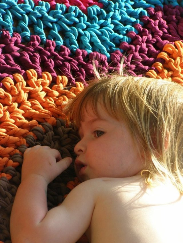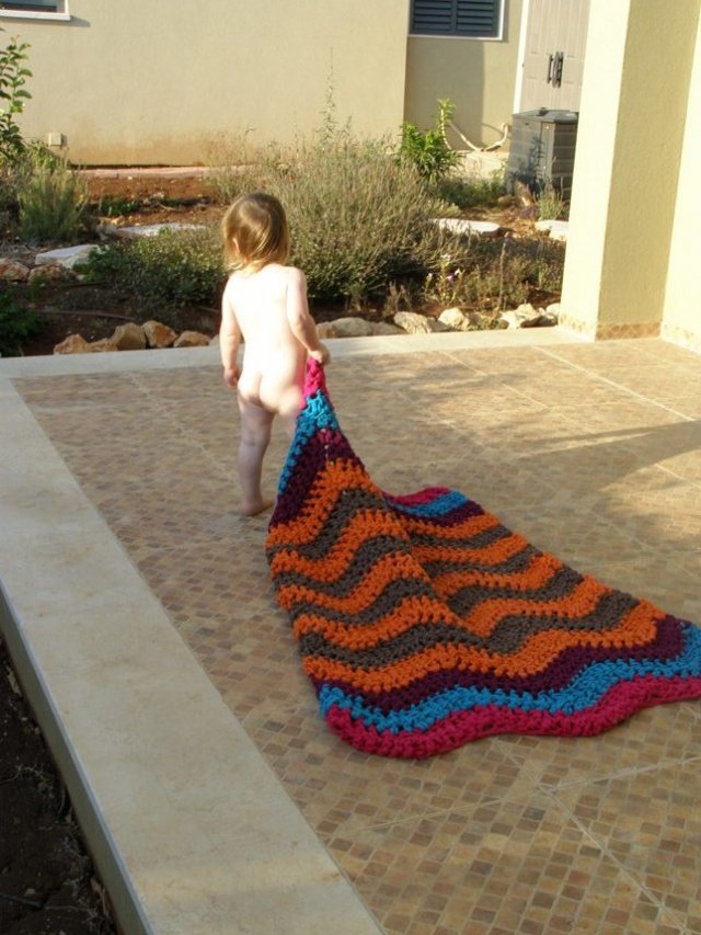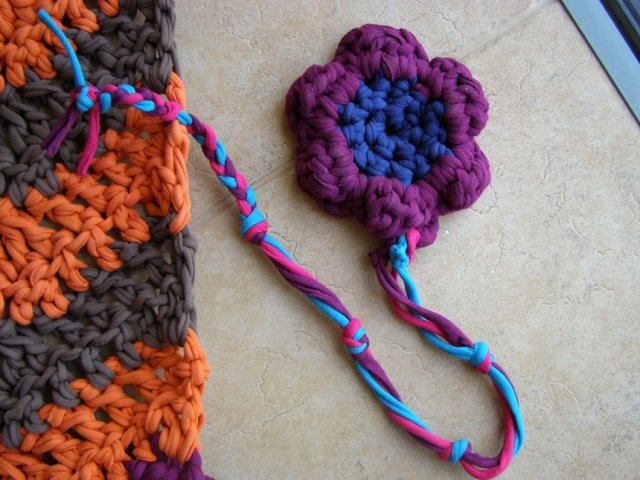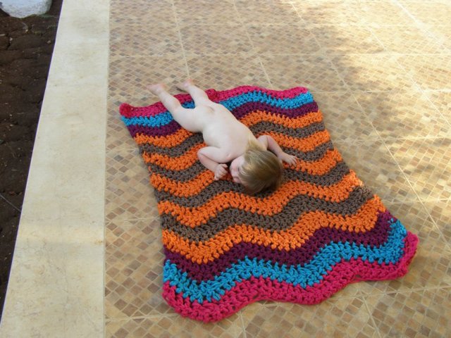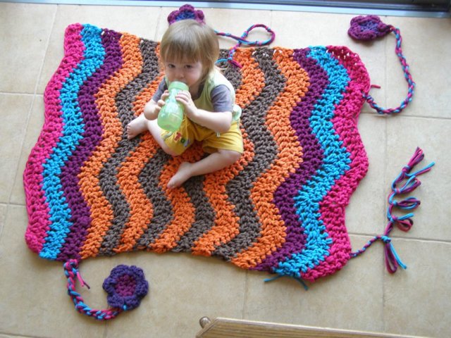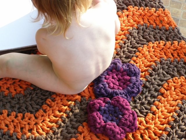 בינתיים, כמה תמונות של שטיחון טרקו שסרגתי כמתנת פרידה לגן הקודם שלו.