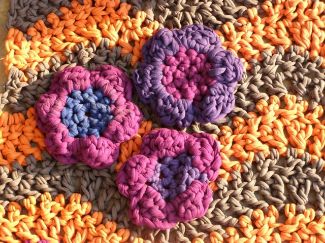 עדיין חסר לי משהו אבל אז נזכרתי בפרחי הטריקו האלו שסרגתי לפני יותר משנה וששכבו אצלי בחוסר דורש.