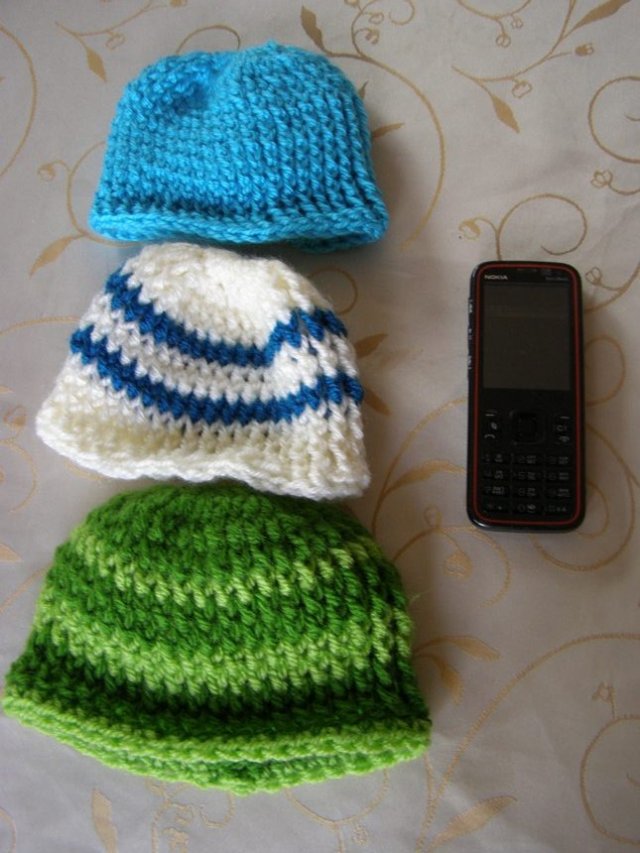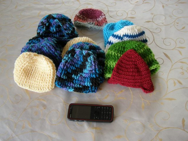 הכובעים שהבאתי נסרגו על ידי (הטור מצד ימין) , על ידי חמותי (שני הטורים מצד שמאל) ועל ידי אדלרי (הכובע המתוק מלמעלה).