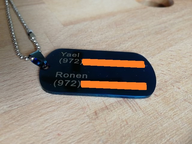 לפני כמה שנים ארגנתי לאורן ולספיר צמידי זיהוי שהיינו שמים להם על הידיים (או הרגליים) בחו"ל,