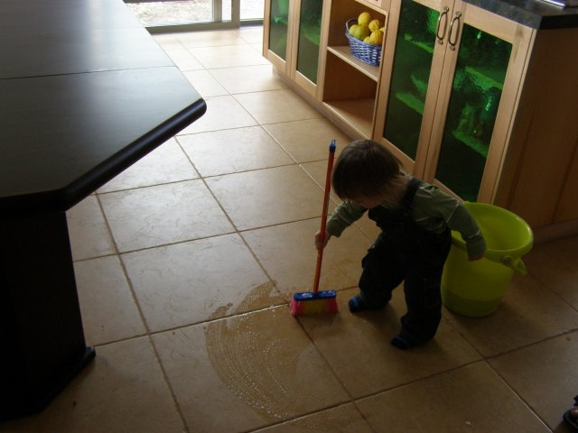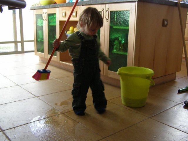 אורן עוזר לנקות אחרי היום הולדת שלי: