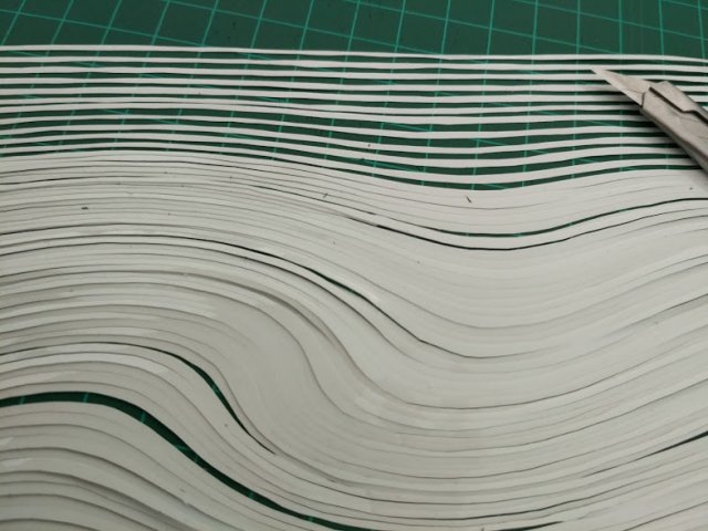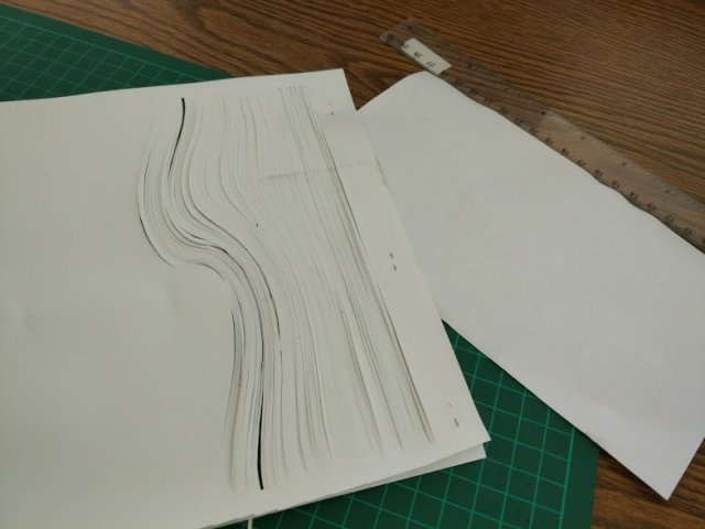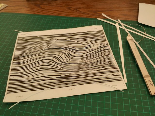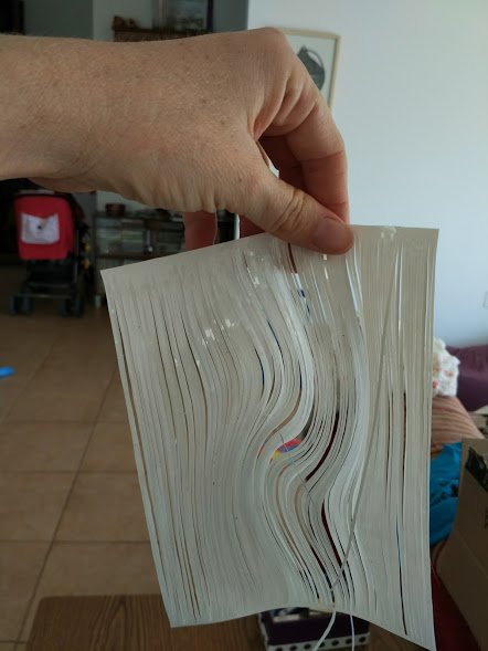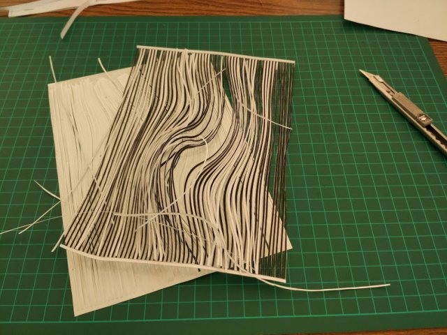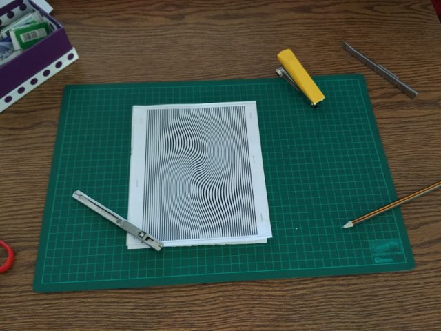 ואז אחרי חמש דקות גיליתי שאני לא יכולה לחתוך את זה כי זה עושה לי סחרחורת. הנחתי מעל דף נייר כדי להקטין את האפקט והמשכתי לחתוך