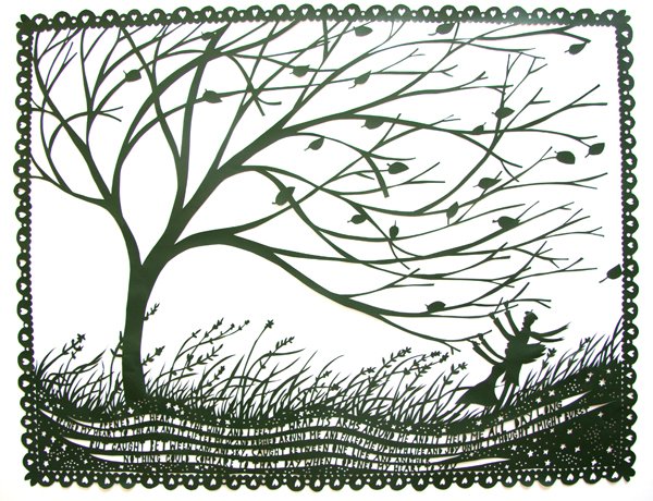 אומן מגזרות נייר ידוע. העבודות שלו נראות "קלילות" וחביבות עד שמסתכלים מקרוב ומבינים כמה חיתוך עדין מושקע בכל אחת מהן.